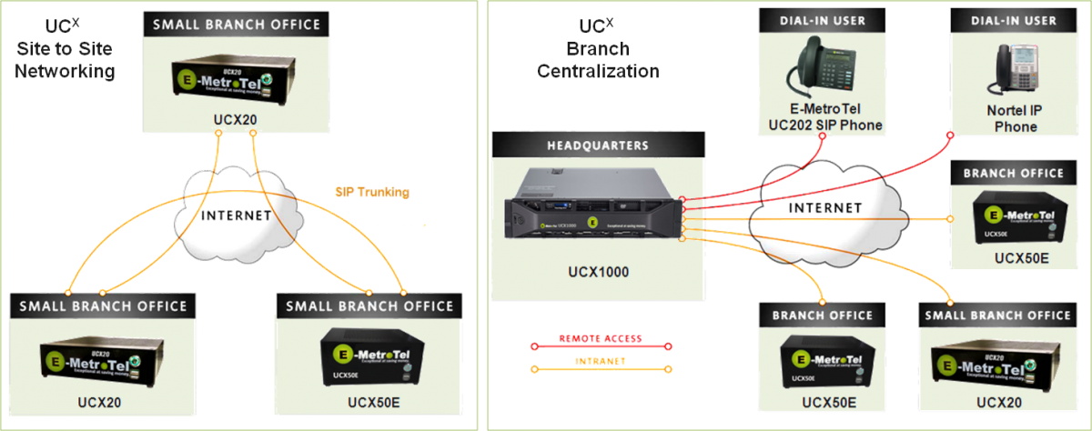 The UCx Multi-site capability is a standard release feature and available on all UCx server appliances. With both site-to-site networking and branch centralization, UCx Multi-site helps Enterprises lower communication costs, improve productivity and deliver greater customer responsiveness.
